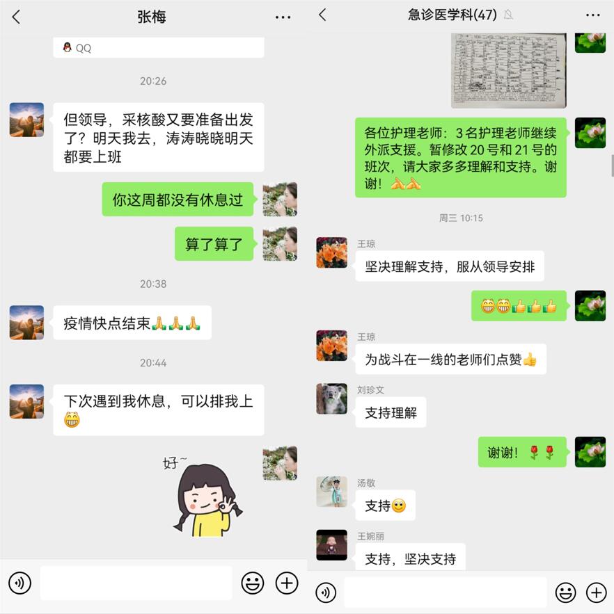 为全力保障患者的医疗服务需求和疫情防控工作需求,在抽调的医务人员中有部分是多次冲锋在抗疫一线。有的随时待命、积极响应号召,凌晨4:00说出发就出发;有的留下了当天刚做手术的亲人,接到指令义无反顾踏上征途;有的为了不给队伍添麻烦,轻伤不下火线;还有的为了不给后方的同事添负担,拼尽全力完成任务……