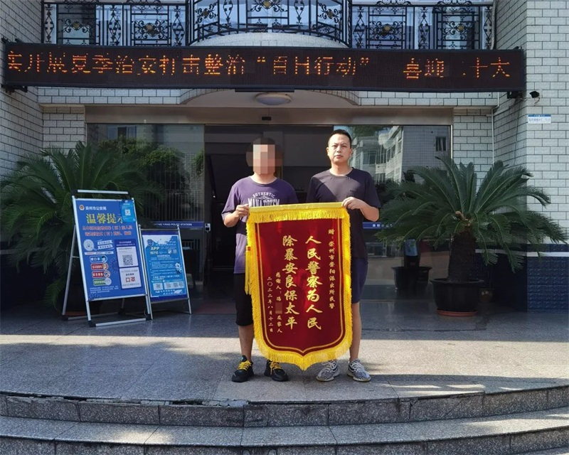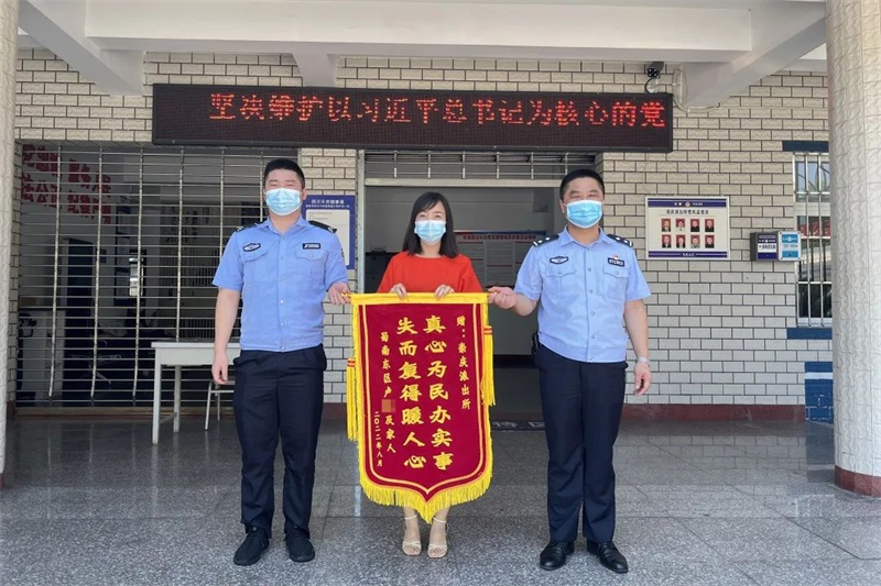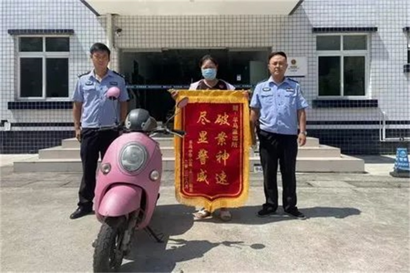 2022年8月11日,羊马派出所收到群众罗女士、王先生送来的锦旗,他们专程赶来感谢民警迅速帮助他们找回被盗电瓶车。