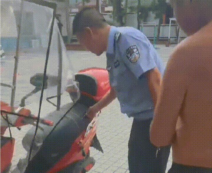 2022年8月12日17时许,前科人员施某骑着一辆红色的电动车到成都崇州公安崇庆派出所报到,崇庆派出所值班民警看到施某所骑的电动车与指挥中心刚刚通报的被盗电动车有些相似,便有了上面的一段对话。