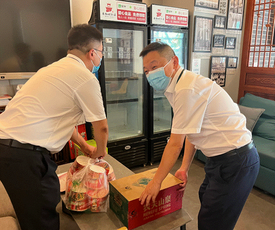 近日,在武侯区南虹社区,有两位男士在往“爱心冰箱”里放入矿泉水。他们是社区对面农商银行的工作人员,当询问他们名字时,这两位男士摆摆手说,“东西是大家买的,我们只是爱心搬运工。这几天天气热,同事们一合计,想到了给冰箱里增加点水和方便面。”