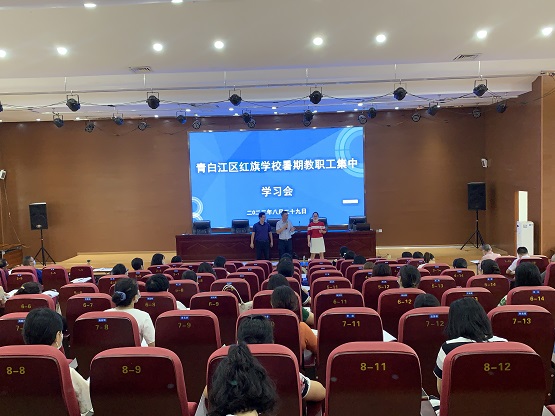 四川新闻网成都9月1日讯 8月29日,青白江区红旗学校全体教职工在学术厅开展强校工程活动,活动由行管中心副主任雷宏主持。