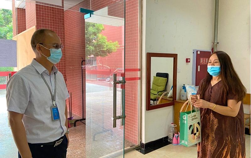 在交谈中,校领导一行询问了同学们的学习和生活情况,叮嘱同学们在疫情期间做好个人防护并合理安排学习时间;慰问了节日中坚守岗位的学校教职员工、防疫工作者和志愿者们,为大家送上节日的祝福。