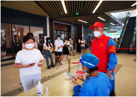 还有一对年轻夫妇,丈夫是位年轻帅气的建筑系统工作者,妻子是位温柔美丽的医务工作者,也积极投入到复地金融岛小区志愿服务工作。因小区采样医生少,两条通道导致核酸检测排队人员较多,作为医务工作者的妻子主动向社区请示,她是医院经过培训的有核酸检测资格的人员,能够担任采样工作。社区核实后,马上紧急调配了单独的一套防疫物资,申请了一个额外信息录入账号,临时增加了一条采样队伍。同时他们还与社区一起商讨出一套更加优化的信息录入模式,使整体核酸采集效率提升。关键时刻,夫妻两人用年轻人的知识能力及聪明才智成为大家身边的榜样!最近,他们每天都活跃在小区里,早上负责维护现场秩序,下午又加入到门岗协助排查进出人员的工作。