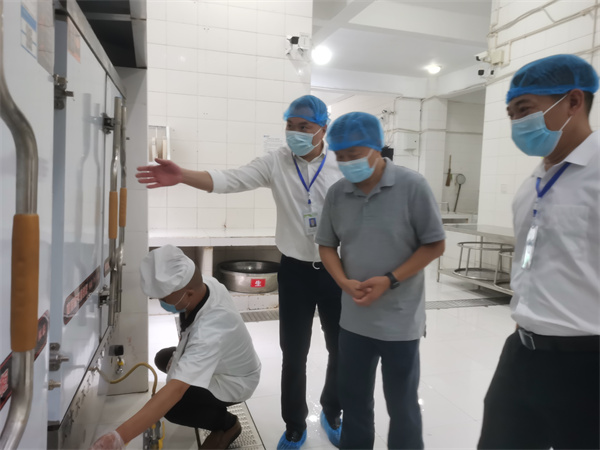 文辉听取了学校关于落实校园疫情防控措施、复学前各项准备工作及学生返校报到安排情况的汇报,实地察看了操场、食堂等重点场所的布置情况。文辉重点就食堂进货查验、索证索票、食品贮存、食品操作加工、食品留样、餐饮具清洗消毒、从业人员健康管理等食品安全管理制度落实情况进行了检查。
