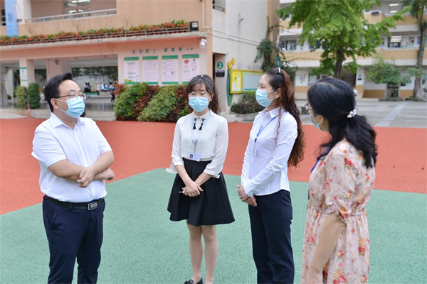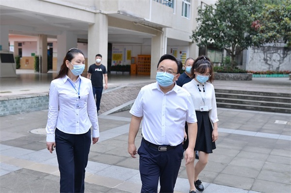 杨文学查看了学校校园环境,检查了学校教学保障、后勤保障、安全保障等各方面的准备情况,了解了疫情防控工作、师生到校情况。学校党总支书记肖菊对学校复学准备工作和9月19日复学情况、复学典礼、师生心理辅导、线上线下教学衔接工作作了详细汇报。