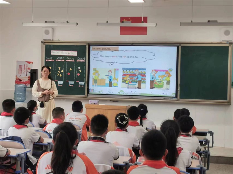 伴随着上课铃声响起,程露老师开启了富有浓浓学习氛围的英语课堂。一声声亲切的问候,一句句温暖的话语,轻松化解了课堂的紧张气氛,拉近了程露老师与孩子们心灵的距离,让孩子们能够轻松自如、从容应对新的学习内容。程露老师在整堂课的把握上,十分注重学生对绘本的阅读与理解,同时注重发挥学生的主观能动作用,以课文为载体,以生活为蓝本,让学生通过生活走进课文,再从课文回归生活,让学生有思可想,有话可说。精心设计的课件,清晰明了的板书,不仅折服了在场的所有英语教师,更让大家看到了程露老师优秀的一面。程露老师认真备课、上课的精神,博得在场老师们的一致赞誉。