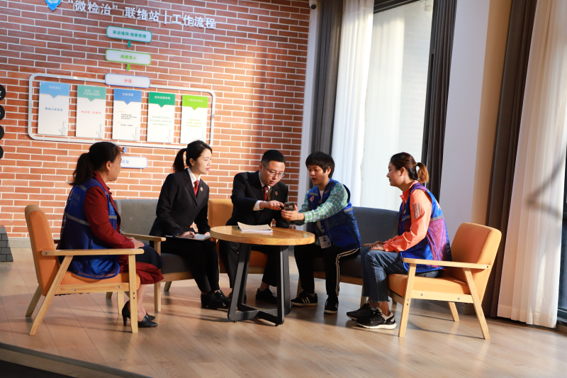 “微检治”品牌以 “微检察、大治理、小切口、大作为”为理念,以群众“急难愁盼”的每一件小事为切口,将检察办案职能向社会治理领域延伸,打造出“属地治理+检察治理”新模式,以“我管”促“都管”共“治”新格局,为实现县域“善治”提供“检察方案”。“微检治”品牌在依托“云尚检”大数据线索和实地上报反映的“线上+线下”平台,做好“检察院+社区(乡镇)”实体区域联络的基础上,同步派驻检察官作为检力下沉的“探头”,聘任联络员作为民情“触角”,双向奔赴加深检察机关与基层的羁绊连接,深度融入共建共治共享的治理格局。