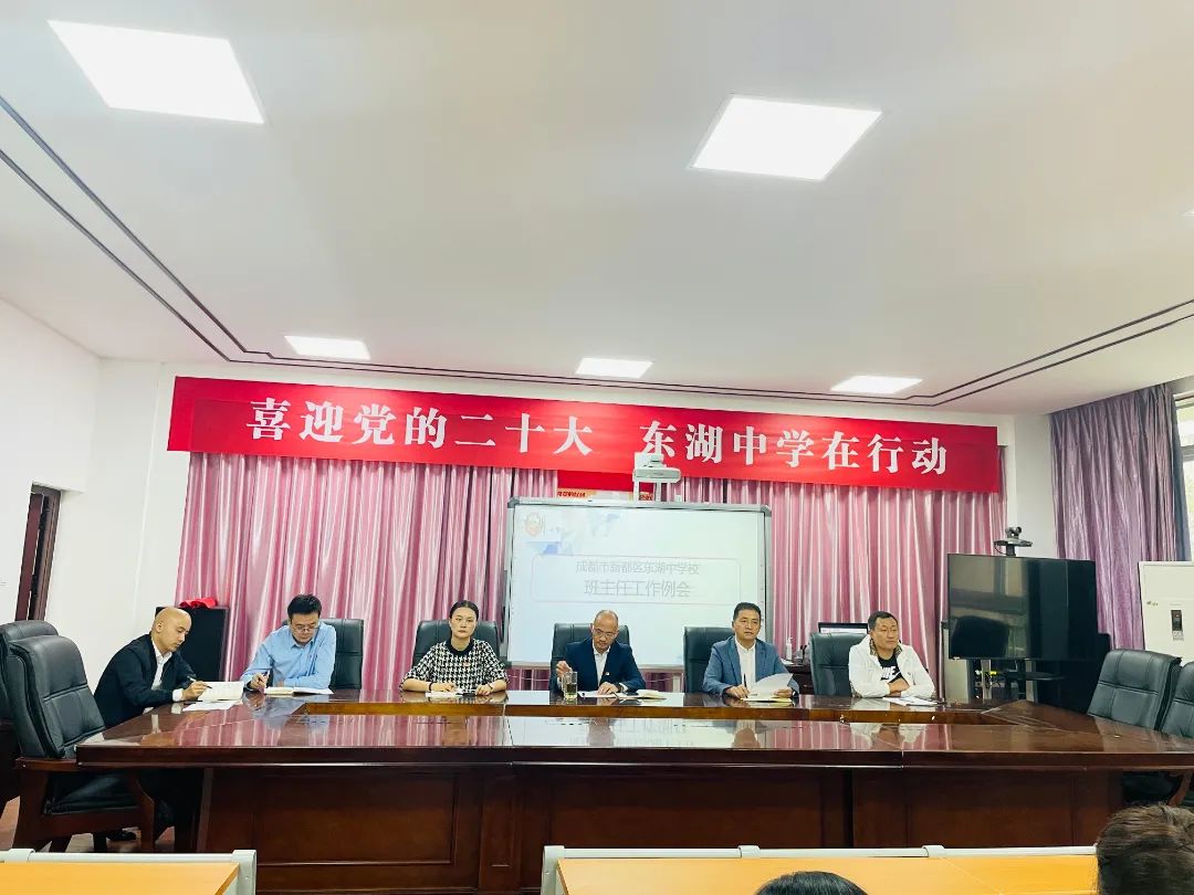 四川新闻网成都9月29日讯 元气满满新学期,乘风破浪再起航。为了充分发挥班主任的“核心”作用,进一步强化班级管理的实效性,努力抓规范精细管理,提高教育教学质量,9月26日下午,东湖中学召开了新学期班主任工作会议。学校党总支书记黄德良、校长范万勇、副校长周文攀、政教处副主任吴小刚、教务处副主任钟俊、体艺卫处主任袁贺及全体班主任参加会议,本次会议由副校长周文攀主持。