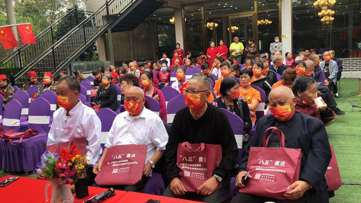 四川新闻网成都9月30日讯 为迎接党的二十大胜利召开,同时进一步巩固树立老年人防范诈骗的意识,2022年9月30日,在国庆节和重阳节来临之际,温江区司法局寿安司法所联合天府律师事务所律师石榴在寿安镇喻庙社区组织开展了“庆国庆•话重阳•喜迎二十大”专项法治宣传活动。