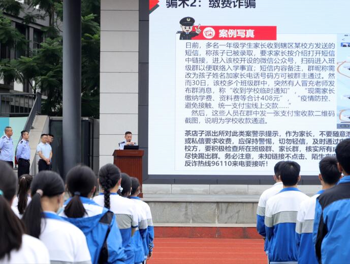 仪式上,法制副校长代明做《心系师生安全,警校共创和谐》普法讲座。代明所长从“什么是电信诈骗”“电信诈骗的常见形式”“如何识别防范电信诈骗”“上当后的补救措施”四个方面与学生交流校园安全与法律法规相关知识。电信诈骗是指以非法占有为目的,利用手机短信、电话、网络电话、互联网等传播媒介,以虚构事实或隐瞒事实真相的方法,骗取数额较大的公私财物的行为,具有犯罪活动的蔓延性比较大、诈骗手段翻新速度很快、反侦查能力非常强、跨国跨境犯罪比较突出的特点。