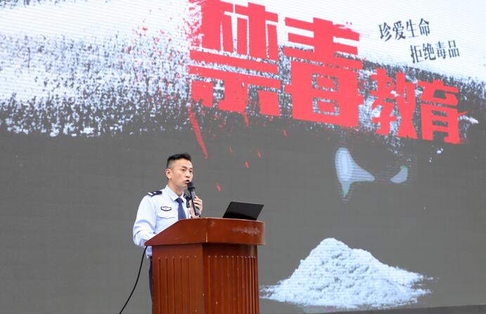 最后,代明所长对同学们进行了禁毒教育,向同学介绍毒品的概念、传统毒品的种类、新型毒品的种类,并指出吸毒的代价巨大,不仅会引发个体不安、焦虑、恶心、呕吐、腹痛、腹泻,还会对家庭和社会产生危害。代所长希望同学们通过毒品基本知识和禁毒法律法规教育,树立正确的三观,不听信毒品能治病,不结交有吸毒、贩毒行为的人。