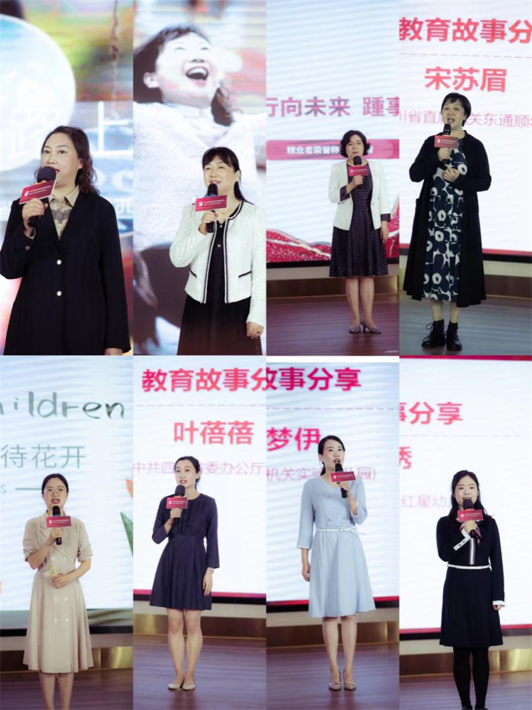 肖梦伊、任琇、叶蓓蓓、刘静、宋苏眉、黄润芳、袁园、张淑兰8名先进代表分享了他们与孩子间的温暖点滴以及自己在教育教学上的成长故事,并收到了来自同事、孩子们的温暖祝福。