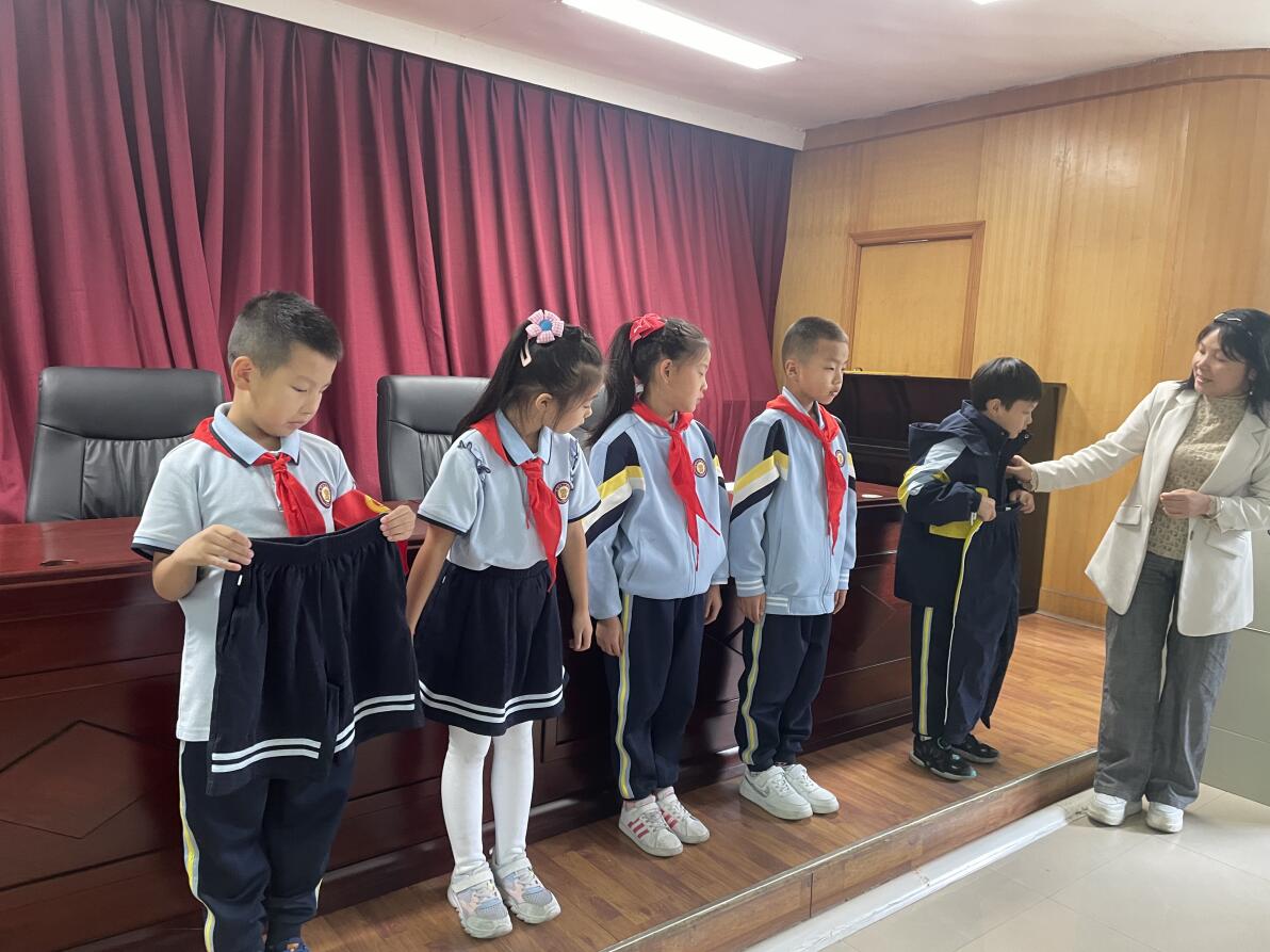 德育主任安翠介绍校服文化理念以及大丰小学校服的发展历史。随后,马小燕、安翠和二年级少先队员代表为大家展示夏季、秋季、冬季校服样式和材料。家长代表发表意见和建议,举手表决时全票通过,非常认可学校校服的选择。