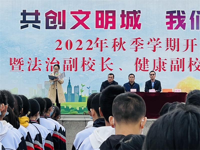 在聘任仪式上,胡德宏校长为弥牟司法所所长房美颁发了法治副校长聘书。房校长为同学们讲授了2022年秋季学期第一堂法治课,她提到:2022年普法工作的主要任务是深入开展青少年“学法筑基”行动;要深入推进“宪法法律进学校”,持续开展“宪法晨读”、“法治教育第一课”、“法治知识竞赛”等法治实践活动和案例教学;同学们要深入学习《未成年人保护法》、《预防未成年人犯罪法》等相关法律。学校要重点开展预防校园欺凌、防范网络沉迷、禁毒反诈等方面的法治教育,让全体师生携手共进,共建法治校园。