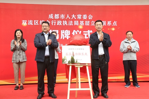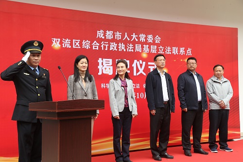 在仪式上,首先由陈春建宣读成都市人大常委会关于设立双流区综合行政执法局为2022年新增基层立法联系点的相关文件。