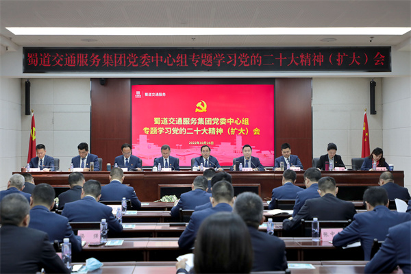 四川新闻网成都10月27日讯 10月26日,蜀道交通服务集团党委理论学习中心组(扩大)会议专题学习贯彻党的二十大精神。会议传达学习了党的二十大报告精神,习近平总书记在参加党的二十大广西代表团讨论时的重要讲话精神,习近平总书记在党的二十大闭幕会上的重要讲话精神,习近平总书记在二十届中共中央政治局常委同中外记者见面时的重要讲话精神,关于十九届中央纪律检查委员会工作报告的决议、关于《中国共产党章程(修正案)》的决议,以及四川省委、蜀道集团党委传达学习党的二十大精神有关会议精神。