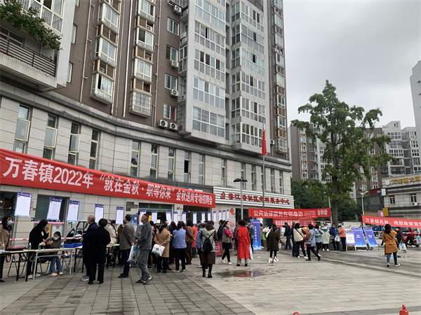 四川新闻网成都10月31日讯 2022年10月28日,温江区万春镇在春江路社区举办2022年“就在金秋·职等您来”金秋送岗专场招聘会。借此机会,温江区司法局万春司法所会同工会、劳保、社管等科室在活动现场为群众提供劳动就业普法宣传、就业培训等便民服务。