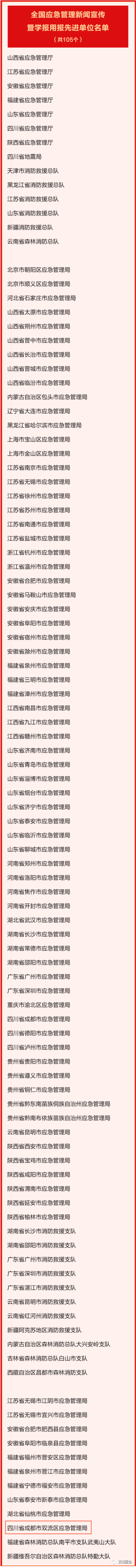 会上,通报表彰了105个全国应急管理新闻宣传暨学报用报先进单位。四川省成都市双流区应急管理局等位列区(市)县局表彰名单当中。