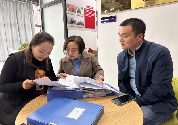 巡教工作组成员前往学府社区检查纪检工作台账(图何曼青)