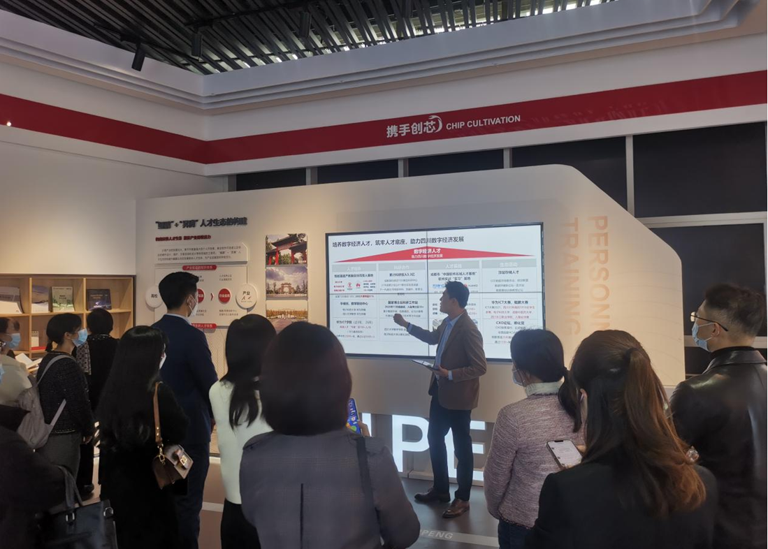 本次活动的第二站,与参会嘉宾们前往华为鲲鹏生态中心进行参观,并由工作人员进行展厅讲解。展厅内展示的基于鲲鹏处理器的整体产业生态,对成都建设全国重要的科技中心、打造全球知名软件研发中心、推动城市经济高质量发展具有重要意义。嘉宾们深刻感受到了华为鲲鹏生态基地展示中心集科技感、未来感、体验感、智能性、专属性、知识性于一体。