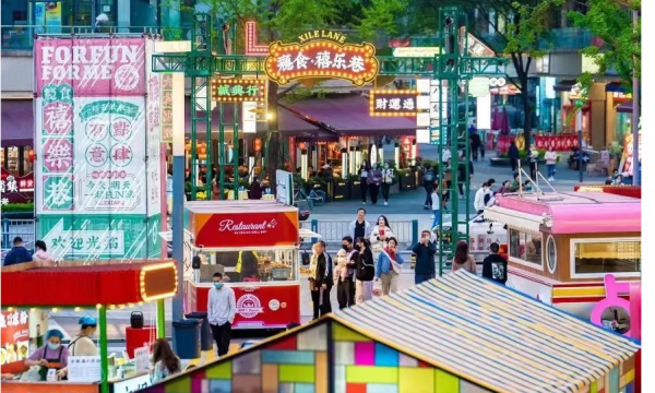 在政策的创新落实上,武侯出台了《夜间经济发展十条措施》《夜间集市备案管理办法(试行)》和《夜间集市管理规范》,设计制作《武侯区消费场景示意图》和《武侯区夜间经济消费地图》等,并通过文旅商等多业态的全面融合,进一步点燃武侯夜间经济活力。