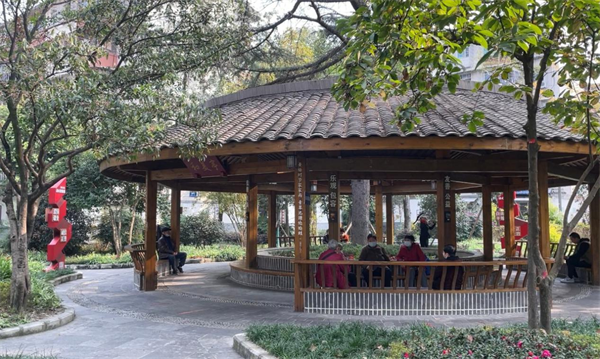 ▲和苑小区古色古香的和美亭,成为居民聚会、休闲议事之地