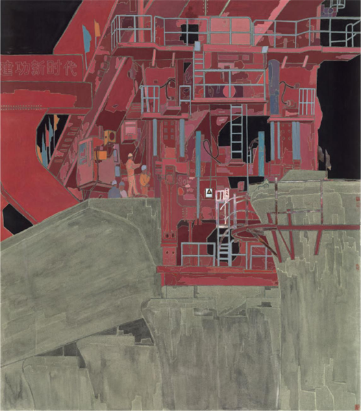 为加快建设成都西部区域中心城市,邛崃在战略性新兴产业,种业科技以及生态文明建设等各项事业都取得了显著成效,一场关于邛崃新格局即将到来。此次重庆画家李上在作品《建功新时代》中描绘了邛崃三绕高速公路建设场景,宏伟的高架水泥墩,巨大的工作机械,辛劳的建筑工人,构成了邛崃高速路发展的主画面,展现出了新时代下邛崃基础设施建设的发展速度。