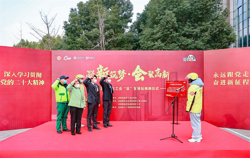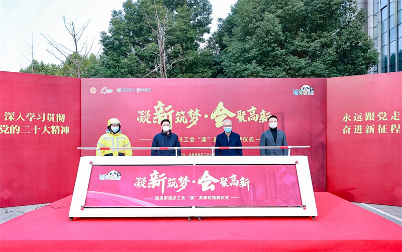 四川新闻网成都12月29日讯 12月29日上午,成都高新区桂溪街道总工会“溪”友驿站揭牌仪式在成都高新花园城广场举行。本次活动由成都高新区工会办事处指导,桂溪街道总工会主办。辖区工会企业代表、服务联盟成员单位代表以及新就业形态劳动者职工代表共计40余人出席此次活动。