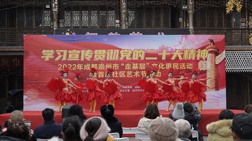 四川新闻网成都12月30日讯 二十大精神照崇州,文化惠千家利万民。12月29日下午,由中共成都市委宣传部主办,成都市精神文明建设办公室、市文化广电旅游局、市文学艺术界联合会承办,中共崇州市委宣传部、崇州市精神文明建设办公室、崇州市文化体育和旅游局、崇州市文学艺术界联合会协办的学习宣传贯彻党的二十大精神——2022年成都崇州市“走基层”文化惠民活动暨首届社区艺术节活动来到了三江汇流、古香古色的元通古镇,为这座千年古镇注入了新的文化活力。精彩的演出,也标志着成都崇州市2022年“走基层”文化惠民活动暨首届社区艺术节圆满落幕。