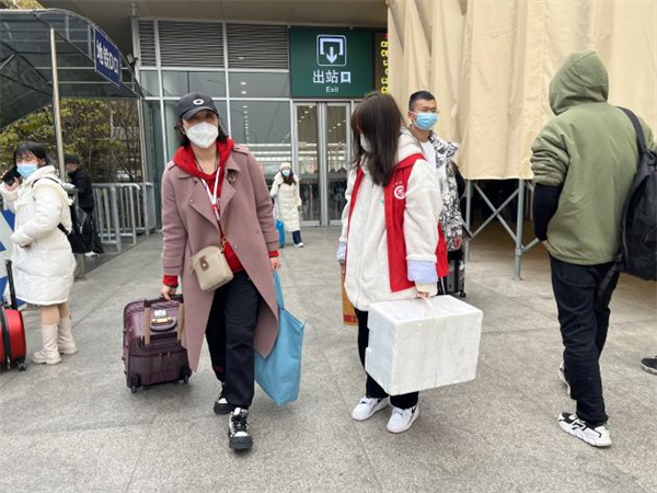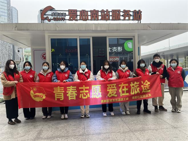 四川新闻网成都1月11日讯 2023年1月10日,桂溪街道团工委联合南新社区团总支在火车南站开展了“青春志愿·爱在旅途”青年志愿服务春运暖冬行动。本次活动共计招募青年志愿者10余名,有来自高校的大学生,也有社区小区团支部的团员。