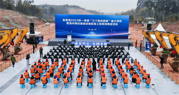 四川新闻网成都2月6日讯 2月6日,金堂县2023年一季度“三个做优做强”重大项目暨淮州绿谷基础设施配套工程现场推进活动在淮州绿谷德尔南路及配套设施项目现场隆重举行。此次现场推进活动启动重大项目15个,计划总投资185.3亿元,包括金堂县淮州绿谷德尔南路及配套设施等基础设施项目4个,金泰运智能环保设备生产线等产业发展项目7个,以及华典锦泽府等民生社会事业及城市功能提升项目4个。