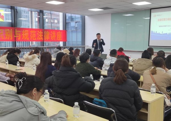 随后,瑞利恒律师事务所合伙人段伟律师从其专业领域出发,详细地为大家讲解了金融犯罪的概念,列举了典型金融犯罪行为及风险识别以及典型金融诈骗行为的罪与罚,列举了相关法律条例和经典案件,讲解了构成犯罪的条件。演讲最后,在实际案例的演示下,给大家提出了一系列防范电信网络诈骗、金融犯罪的有效建议。(漆奇)