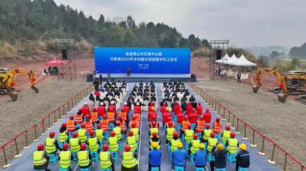 四川新闻网成都3月13日讯 近日,金堂黑山羊交易中心暨又新镇2023年乡村振兴项目集中开工活动在成都市金堂县又新镇正式举行。