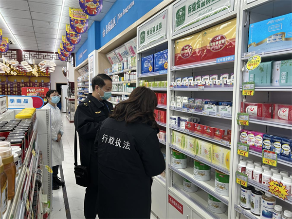 为了解辖区特殊食品经营现状,摸清行业乱象“病灶”,从3月开始,金牛区市场监督管理局科、所、队联合对辖区内药店、母婴用品店、大型超市等重点经营单位进行突击检查。重点检查特殊食品经营单位是否设立专区专柜、提示牌;是否存在特殊食品与普通食品、药品混合销售情况;特殊食品来源渠道是否合法;是否具有批准文号;标签、说明书等标识的内容是否符合要求;经营场所及其周边是否存在发放、张贴、悬挂虚假宣传资料等方式推销特殊食品等。