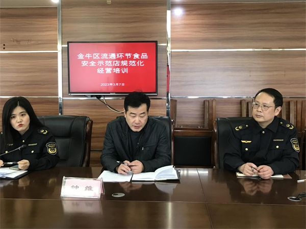 根据突击检查情况和经营者反馈的规范知识不足的痛点,金牛区市场监督管理局以示范店为切入点,召开金牛区流通环节食品安全示范店规范化经营培训,针对性提高行业规范意识。