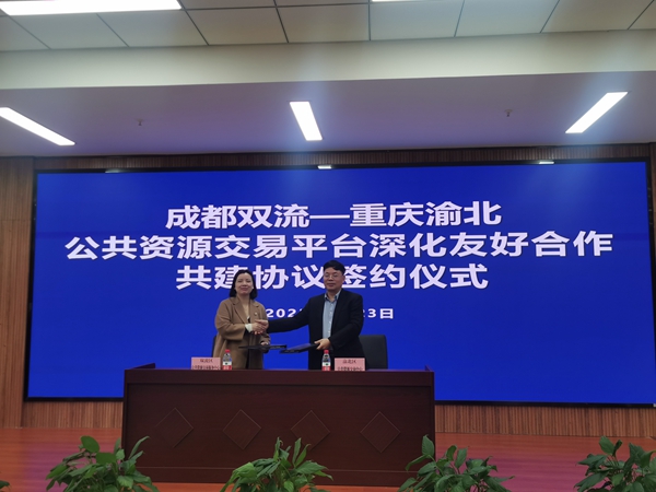 四川新闻网成都3月24日讯 3月23日上午,成都市双流区公共资源交易服务中心与重庆市渝北区公共资源交易中心在重庆市渝北区签订深化友好合作共建协议,双方未来将在共同建立远程异地评标环境、失信信息互换、人才培养等方面创新举措,深化双流区与渝北区协同发展友好城市关系,共同奋力推进川渝公共资源交易市场一体化工作。协议签订后当天,两地合作圆满完成了首例跨省远程评标项目,双流公共资源交易项目跨省远程异地评标实现“零突破”,同时实现了专家资源跨省域共享、项目实施跨省域监督、风险防控跨省域强化。
