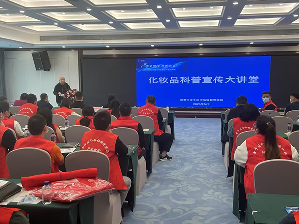 金牛荷花池区域从事化妆品批发的经营者业务遍布中国西南片区并辐射全国,荷花池市场在化妆品行业中地位十分重要,历来是全区化妆品安全监管重点,提升企业质量安全意识是关键。本次大讲堂活动在荷花池区域举办,通过培训会形式开展,一方面由市市场监管局专家开展化妆品专题法规培训,明确当前化妆品注册、备案,生产、经营、使用等环节的法律责任、规范和标准。另一方面以科普宣传周为契机,区市场监管局倡导企业、机构在服务公众“爱美求美”过程中积极引导、正确普及化妆品安全知识,保障公众用妆安全。