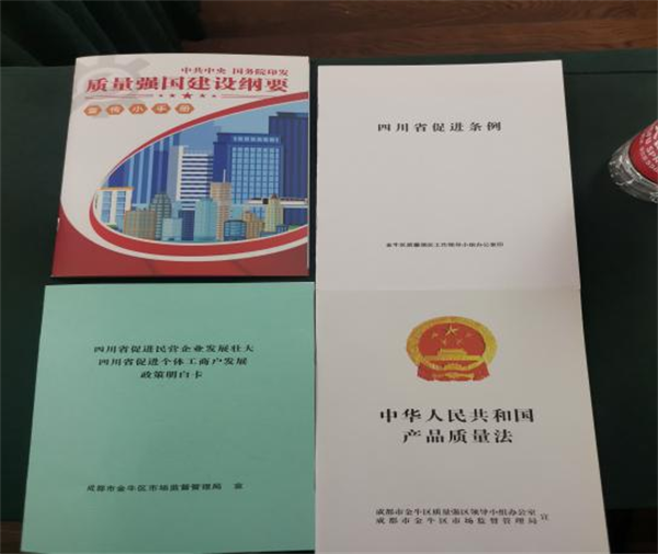 会议现场还发放了《四川省促进民营企业发展壮大政策明白卡》《四川省促进个体工商户发展政策明白卡》《中华人民共和国产品质量法》《质量强国建设纲要》等宣传资料120余本。(锁千程)