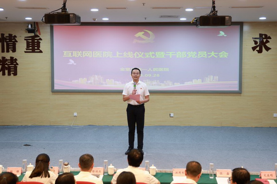 四川新闻网9月28日讯 9月28日,金堂县第一人民医院(四川大学华西金堂医院)互联网医院正式上线。华西金堂医院医共体单位赵家镇卫生院党支部书记、院长林醒,福兴镇中心卫生院党支部书记邱雄,医院领导班子、中层干部、党员和职工代表等200余人共同见证这一历史时刻。上线仪式由该院党委委员、副院长陈剑主持。