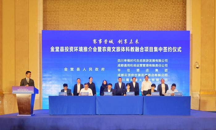 以赛兴业,助力公园城市争先进位。金堂县抢抓成都“后大运”发展机遇,深耕厚植办赛、营城、惠民、兴业理念,持续打造新体育、新文旅、新消费融合发展的新场景新业态,推动农商文旅体科教融合发展。10月13日,金堂县举办“赛事营城·创享未来”金堂县投资环境推介会暨农商文旅体科教融合项目集中签约仪式,集中签约农商文旅体科教融合项目11个,对外发布中国橘乡、五凤古镇等总投资224亿元的机会清单,面向国内外企业发出投资创业“邀请函”。