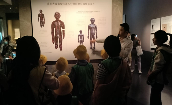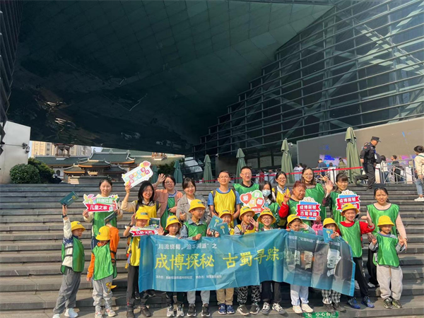 整个讲解历时两小时左右。中午,当大家从展厅走出来时,秋日暖阳刚好洒满全身。沉浸在讲解员趣味的讲解里的小朋友,仍兴致勃勃地分享自己对古老文化的认识。此次研学意义深远,一方面帮助小朋友们更深刻理解到了川流绕蜀、追本溯源的力量,另一方面更埋下了颗一脉相承、生生不息的种子。(漆奇)