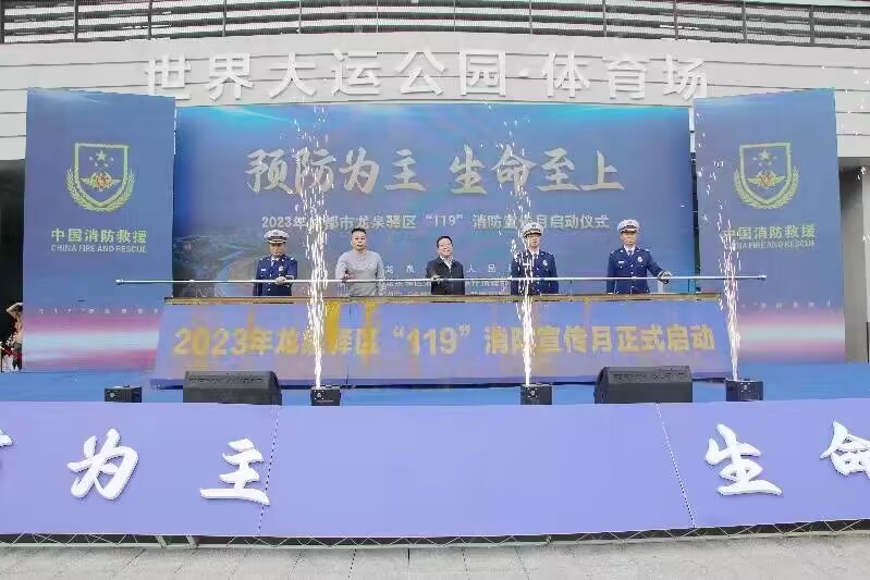 四川新闻网成都11月8日讯 11月7日,以“预防为主、生命至上”为主题的2023年龙泉驿区“119”消防宣传月启动仪式在东安湖体育公园主体育场旁拉开帷幕。龙泉驿区委常委、区政府常务副区长周振华,市消防救援支队政治部主任李绍平出席活动。区应急局、区消防救援大队主要和分管负责同志及相关科室负责人,各街道办和镇政府、区消防安全事件指挥部成员单位、公安派出所分管领导和具体负责人、企业代表、网格员代表、志愿者代表参加活动。