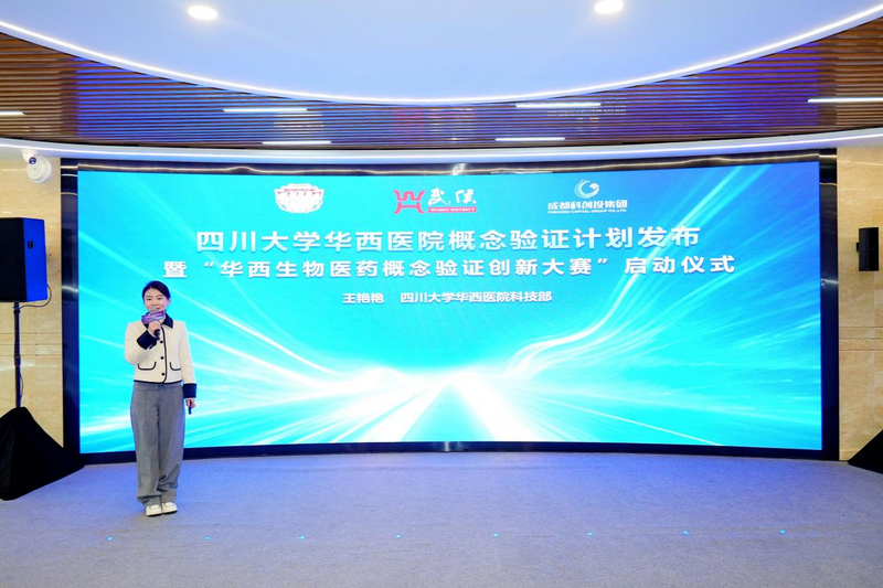 为了进一步畅通科技成果转化渠道,推动研究型医院创新概念和早期科技成果加速熟化,迈出产业应用的关键一步,四川大学华西医院科技部副部长王艳艳在启动会上,发布了“四川大学华西医院概念验证计划暨华西生物医药概念验证创新大赛”,希望通过该计划的落地实施和创新大赛的开展,构建医疗科技创新转化全流程服务体系、筛选评估体系、概念验证标准化流程和资金支持体系。