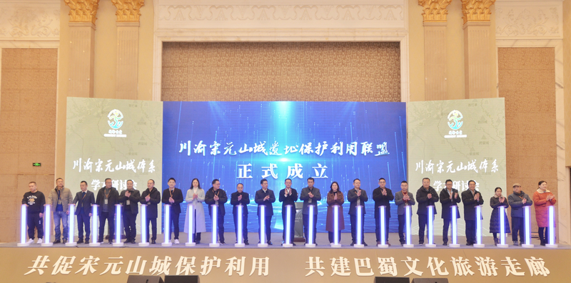 研讨会开幕式上还举行了川渝宋元山城遗址保护利用联盟成立仪式,宣读了联盟倡议书,川渝宋元山城23个区县代表上台点亮灯柱,标志着各方智慧与力量的凝聚,搭建起区域文物保护利用合作一体化平台,有利于统筹推进宋元山城遗址考古与研究工作,对两地联合争创世界文化遗产品牌具有重要意义。