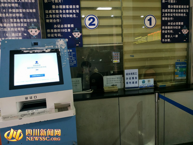 同时,四川新闻网记者注意到,在火车北站售票大厅公安制证点,除了人工服务,还设置了自助机,可以为遗失或者遗忘带身份证的乘客提供临时身份证明,只需要几分钟就可以办理好,该机器全国联网,临时身份证明可以用于住店、乘坐飞机、火车等。