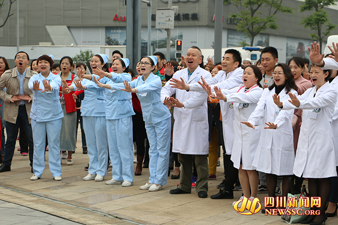活动在四川省肿瘤医院医护表演的劲舞中热烈开场。癌症康复会会员表演了舞蹈恋上时装《梨花颂》,癌症康复会会员表演了广场舞《锦绣天府》……现场观众反响热烈,气氛瞬间达到“嗨点”。