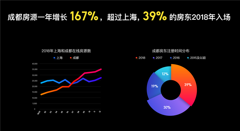 “榛果民宿和成都同样有不解之缘。”冯威赫在房东大会上回顾说,2017年刚上线时在成都只有20位在线房东、41间在线房源,两年后已有5500多名在线房东、超过2.2万在线房源。“2018年12月消费间夜量同比增长第一的城市是成都,第二是重庆。”
