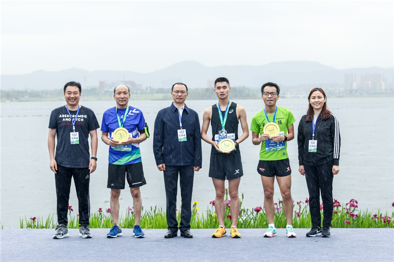 比赛开跑33分钟后,伴随着第一位选手冲线,赛事也在热烈地继续,参赛选手陆续通过终点拱门。“8公里跑下来还是挺累的,不过沿途一路风景秀丽,虽然有点小雨也不影响我享受运动的热情,这确实是一次绿色低碳出行的特别体验,以后这种类似的活动我还愿意来参加,争取取得更好的成绩!”环保跑男子组第一名鲜茂东说。