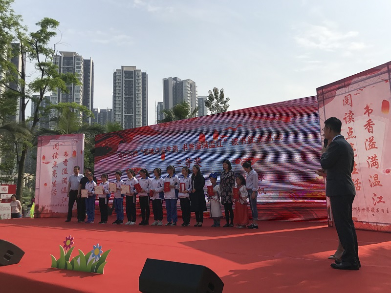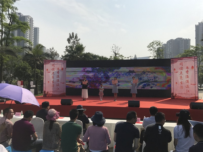 本次活动由温江区教育局、文化体育和旅游局、涌泉街道办主办。活动现场,光华启梦幼儿园的小朋友们向社会发出《最是书香能致远》的读书倡议,呼吁大家放下手机捧起书本,给小朋友们树立好学习的榜样;综艺朗诵《中华孝道》、童话剧《美丽的花纹》、经典合唱《论语》、《我和我的祖国》等精彩的文化表演赢得现场市民和观众的阵阵掌声。活动现场还设置有图书阅览、书画展览、手工制作等丰富多彩的活动内容。