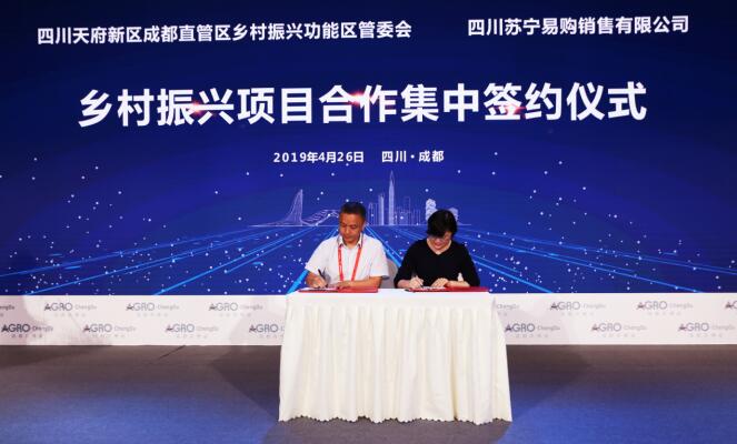 4月26日,记者在2019成都天府新区乡村振兴投资合作推介会暨签约仪式上了解到,正在加紧建设中的国家成都农业科技中心已遴选出第一批13支优先入驻的科研团队。同时,天府新区预计在未来5年的时间里,呈现一个估值过亿元的优质区域公用品牌,该公用品牌建设将先行在有基础的草莓、枇杷、葡萄三大优势产业上启动。会上,阿里巴巴、苏宁易购、顺丰等知名企业分别与天府新区签订了乡村振兴项目合作协议。